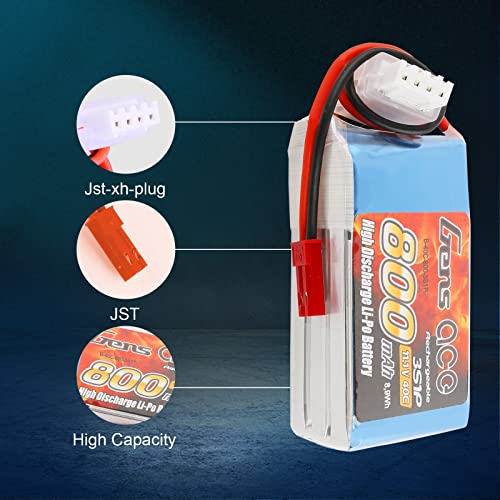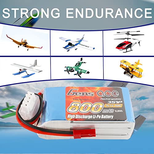 Batteria Lipo Gens ace 3S1P 11.1V 800mAh 40C 8.88Wh Custodia morbida Batteria Lipo con connettore JST-SYP per Eflite Mini Convergence VTOL da 410 mm, elicottero di classe 250, Warbirds da 800 mm ecc.