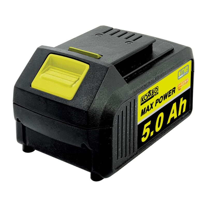 BATTERIA Li-ION 5.0 Ah EASY4PRO KOMBO PRO Batteria al litio adatta per tutti gli elettrutensili a batteria della linea ONE POWER FOR ALL della KOMBO PRO. Caratteristiche Indicatore LED 4 stadi con switch per verificare Carica Residua Voltaggio 20 V Capacita Batteria Spunto 5.0 Ah Potenza Max 1125 W