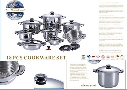 Batteria di Pentole 18 pz in Acciaio Inox 18/10 AMC Gold Satin Prestige