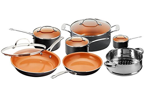 Batteria di pentole chef in rame super resistente! 100% senza PFOA kit 10 pezzi! resistenti in forno fino a 260° set di pan padelle copper pentola padella red -fondo idoneo per cucina a induzione 5726