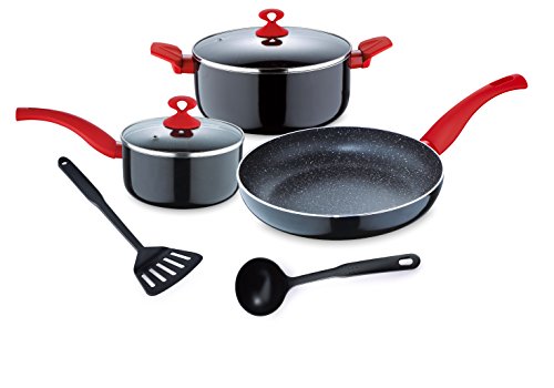 Batteria di pentole chef Renberg Marble in pietra lavica nera antigraffio e super resistente! Set 7 pezzi dimensioni 16/20/24 per piano cottura gas e induzione marmo vulcanica RB-1255 colore ROSSO