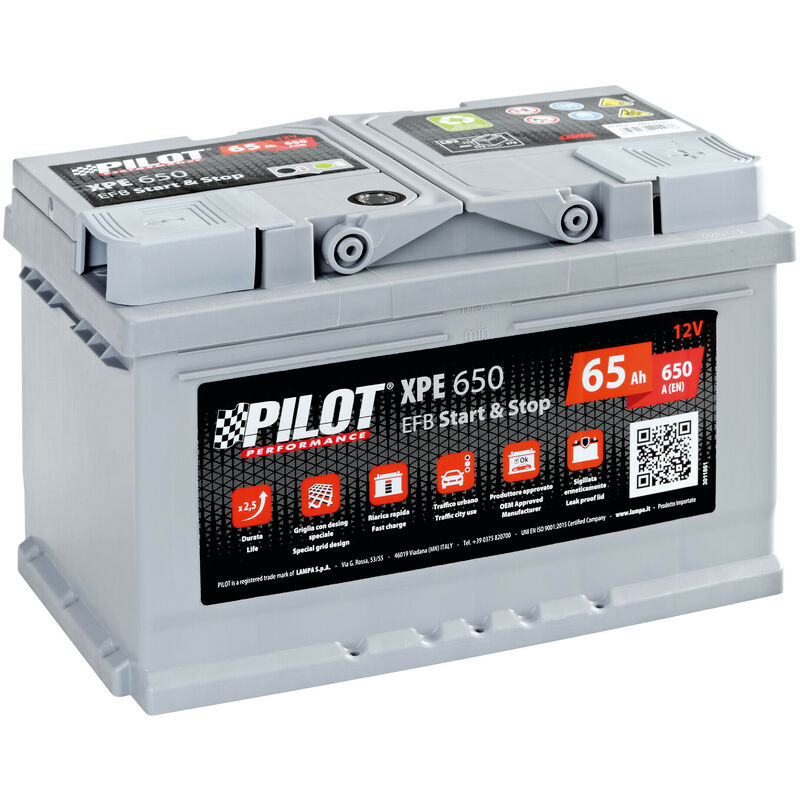 • Progettate appositamente per i veicoli dotati di tecnologia Start & Stop. • Piastre rinforzate di alta qualità che forniscono una durata extra (fino al 150% in più di cicli ricarica) senza bisogno di manutenzione ed una resistenza all'ossidazione maggiore del 40% rispetto ad una batteria tradizionale. • Adatte anche per veicoli di nuova generazione con un alto consumo di elettricità grazie al 15% in più di potenza di avviamento e alla predisposizione per la ricarica rapida. • Le batterie Pilot EFB Start & Stop sono fornite pronte all'uso. • Indicatore di carica permette di controllare visivamente lo stato della batteria.• Doppio coperchio di sicurezza termosaldato per prevenire qualsiasi fuoriuscita di liquido, dotato di sistema rompifiamma che protegge la batteria da scintille o fiamme accidentali mentre i tappi a labirinto ricondensano l'elettrolito impedendone la fuoriuscita. • Qualità primo equipaggiamento, con prestazioni e specifiche tecniche conformi alle normative e agli