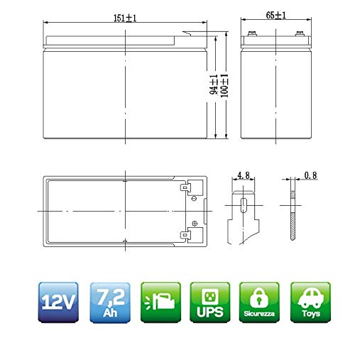 BATTERIA AL PIOMBO RICARICABILE 12V 7,2AH PER ANTIFURTI E ALTRO