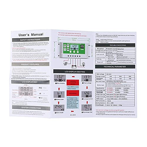 Y&H 30 A per batteria al piombo/litio da 12 V e 24 V, con display LCD retroilluminato, regolatore di carica del pannello solare con doppia USB e regolazione del timer, ore di accensione/spegnimento