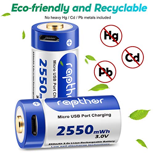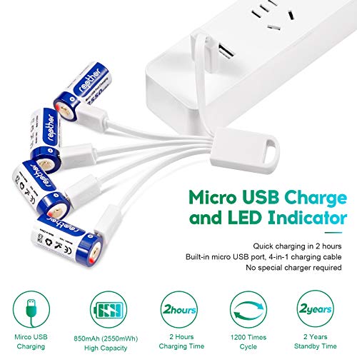 Le batterie da 123A utilizzano il cavo di ricarica USB 4 in 1 in dotazione per caricare facilmente la batteria utilizzando un adattatore telefonico, un caricabatterie, un power bank mobile o un laptop.