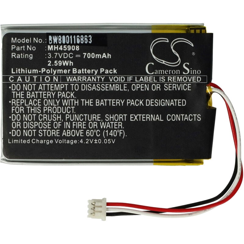 Vhbw - the clever way - Batteria ricaricabile di ricambio, compatibile e di alta qualità, ad alta capacità, per cuffie e auricolari senza fili (cuffie wireless) (Può trovare tutti i modelli corrispondenti qui di seguito) - Le nostre batterie ricaricabili soddisfano tutti i requisiti rilevanti per la sicurezza operativa CONTENUTO DELLA SPEDIZIONE: - 1x batteria ricaricabile SPECIFICHE TECNICHE: - Tecnologia: Li-Poly - Capacità: 700 mAh - Tensione: 3,7 V - Energia: 2,59 Wh Per garantire la compatibilità, verificare se la batteria ricaricabile attualmente in uso è presente nell'elenco. SOSTITUISCE: - Corsair MH45908 Accessori e pezzi di ricambio di alta qualità. Per prolungare la durata di vita dei Suoi apparecchi elettrici.