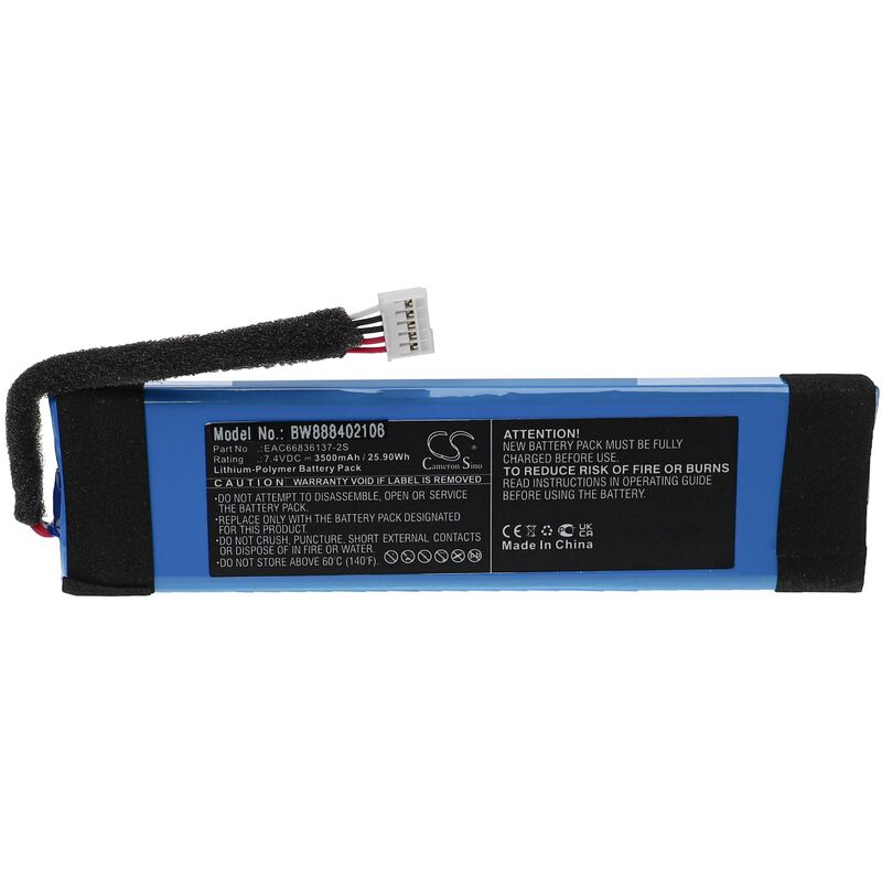 Vhbw - the clever way - Batteria ricaricabile di ricambio, compatibile e di alta qualità, ad alta capacità, per altoparlanti e speaker portatile (Può trovare tutti i modelli corrispondenti qui di seguito) - Le nostre batterie ricaricabili soddisfano tutti i requisiti rilevanti per la sicurezza operativa - Grazie alla nostra batteria potrà dare nuova energia alle casse e ascoltare la Sua musica preferita dappertutto, più a lungo e senza il bisogno del caricabatterie CONTENUTO DELLA SPEDIZIONE: - 1x batteria ricaricabile SPECIFICHE TECNICHE: - Tecnologia: Li-Poly - Capacità: 3500 mAh - Tensione: 7,4 V - Energia: 25,9 Wh - Numero di celle: 2 Per garantire la compatibilità, verificare se la batteria ricaricabile attualmente in uso è presente nell'elenco. SOSTITUISCE: - LG EAC66836137-2S Accessori e pezzi di ricambio di alta qualità. Per prolungare la durata di vita dei Suoi apparecchi elettrici.