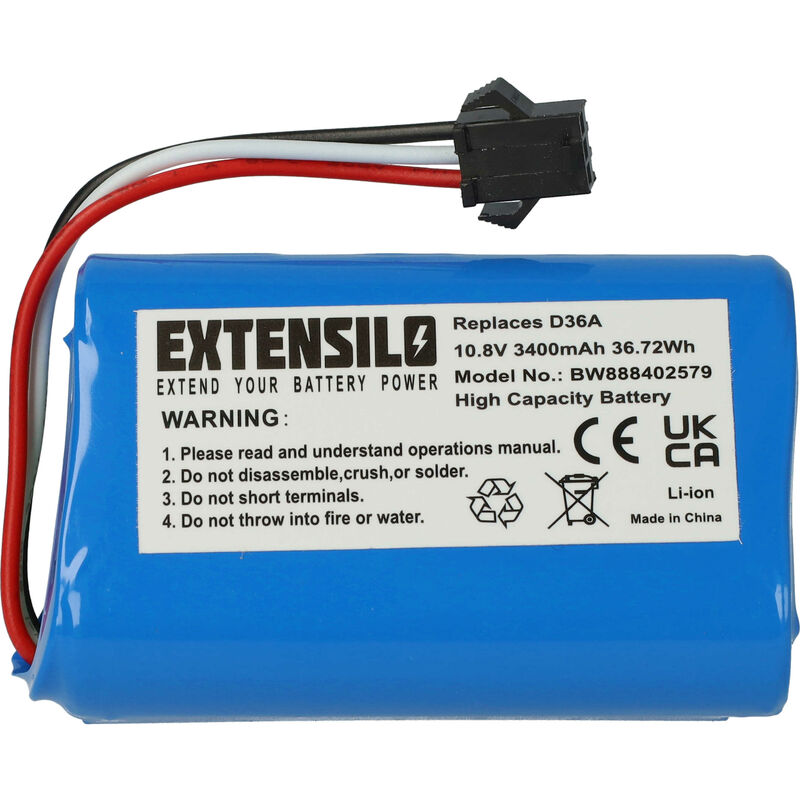 Batteria ricaricabile di ricambio, compatibile e di alta qualità, ad alta capacità, per robot aspirapolvere o robot / dispositivo per la pulizia della casa (Può trovare tutti i modelli corrispondenti qui di seguito) - Le nostre batterie ricaricabili soddisfano tutti i requisiti rilevanti per la sicurezza operativa Inoltre, nelle nostre offerte è possibile trovare cartucce profumate, per profumare l'ambiente mentre si usa l'aspirapolvere o il robot aspirapolvere. CONTENUTO DELLA SPEDIZIONE: - 1x batteria ricaricabile SPECIFICHE TECNICHE: - Tecnologia: Li-Ion - senza effetto memoria - Capacità: 3400 mAh - Tensione: 10,8 V - Energia: 36,72 Wh - Numero di celle: 3 Per garantire la compatibilità, verificare se la batteria ricaricabile attualmente in uso è presente nell'elenco. SOSTITUISCE: - Ecovacs ZJ1450 Batterie ricaricabili EXTENSILO Premium per gli standard più elevati. Le nostre batterie di ricambio sono progettate per prestazioni straordinarie e una massima durata.