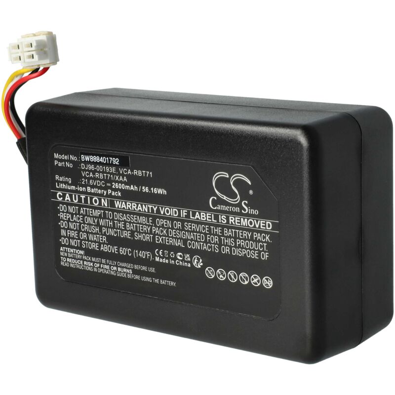 Vhbw - the clever way - Batteria ricaricabile di ricambio, compatibile e di alta qualità, ad alta capacità, per robot aspirapolvere o robot / dispositivo per la pulizia della casa (Può trovare tutti i modelli corrispondenti qui di seguito) - Le nostre batterie ricaricabili soddisfano tutti i requisiti rilevanti per la sicurezza operativa Inoltre, nelle nostre offerte è possibile trovare cartucce profumate, per profumare l'ambiente mentre si usa l'aspirapolvere o il robot aspirapolvere. CONTENUTO DELLA SPEDIZIONE: - 1x batteria ricaricabile SPECIFICHE TECNICHE: - Tecnologia: Li-Ion - senza effetto memoria - Capacità: 2600 mAh - Tensione: 21,6 V - Energia: 56,16 Wh - Colore: nero - Numero di celle: 6 Per garantire la compatibilità, verificare se la batteria ricaricabile attualmente in uso è presente nell'elenco. SOSTITUISCE: - Samsung DJ96-00193E, VCA-RBT71, VCA-RBT71/XAA Accessori e pezzi di ricambio di alta qualità. Per prolungare la durata di vita dei Suoi apparecchi elettrici.
