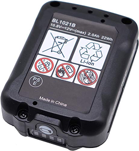 Batteria sostitutiva da 2,0 Ah BL1021B 12 V/10,8 V con caricatore DC10WD compatibile con Makita BL1021B BL1016 BL1041B 197339-1 197406-2 BL1040 BL1040B BL1020B BL15B