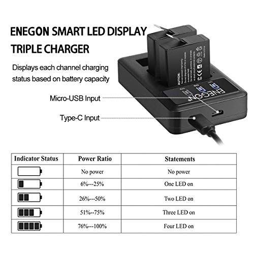 【COSA RISULTATI】 2 * Batterie, 1 caricabatterie triplo, 1 * Guida dell'utente, 1 cavo USB, garanzia da 18 mesi e servizio clienti 24 ore su 24.