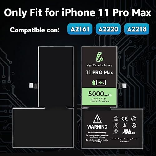 Batteria LL TRADER per iPhone 11 Pro Max, batteria agli ioni di litio ad alta capacità da 5000 mAh con tutti gli strumenti di riparazione