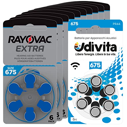 66 Batterie Per Apparecchi Acustici Rayovac Extra Advanced 675. 66 Pile: 60 Rayovac + 6 Udivita