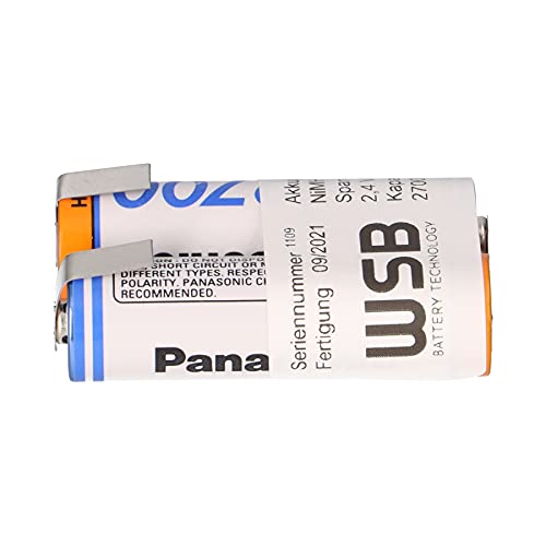 2 batterie con linguetta di saldatura, AA Mignon LR6, 2,4 V, 2700 mAh, ad alta corrente, ricarica rapida, batteria
