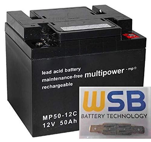 2 batterie al piombo AGM 12 V/50 Ah - MP50 - 12 C compatibile con i cicli WP50 - 12NE, 12LCP-50, REC50 - 12I + adattatore WSB