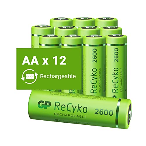 Batterie ricaricabili AA - Confezione da 12 batterie | GP Recyko | Batterie AA LR6 Ricaricabili 2600 mAh NiMH - Precaricate e ad alta capacità | per l'uso quotidiano in tutti i tuoi dispositivi