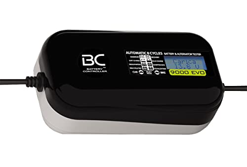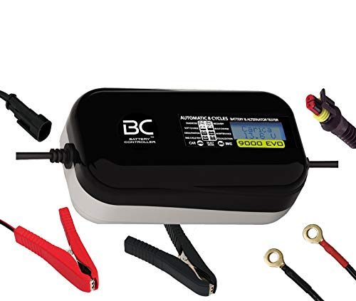 BC Battery Controller BC 9000 EVO, Caricabatteria e Mantenitore Digitale/LCD, Tester di Batteria e Alternatore per tutte le batterie Auto, Moto, Camper, RV ed Imbarcazioni 12V Piombo-Acido, 9A/1A