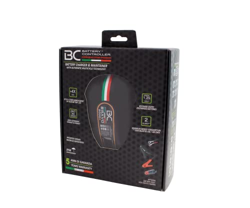Battery ControllerBRAVO 2000+ Caricabatterie/Mantenitore Intelligente 2 Ampere per Batterie 12V Piombo-Acido, dotato di Tester di Batteria e Alternatore, adatto per Moto, Scooter e Auto fino a 100Ah