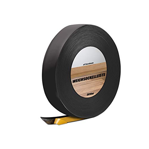 Battiscopa Kiel, ritagliabile a piacere, retro autoadesivo, battiscopa morbido in 3 colori, 18,5 x 18,5 mm (lunghezza: 5 metri, nero)