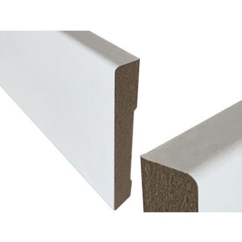 BATTISCOPA LAMINATO MDF BIANCO DIMENSIONI 70x10x2400MM (24 MT LINEARI) In MDF laminato bianco. Dimensioni 70x10x2400 mm. Confezione 10 aste ml. 24