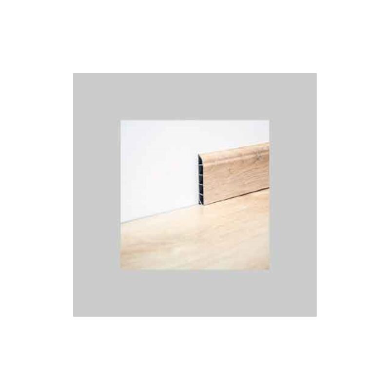 In PVC. Lunghezza barra 2400x60x12 mm. Battiscopa per pavimento in spc colore rovere naturale Laminato