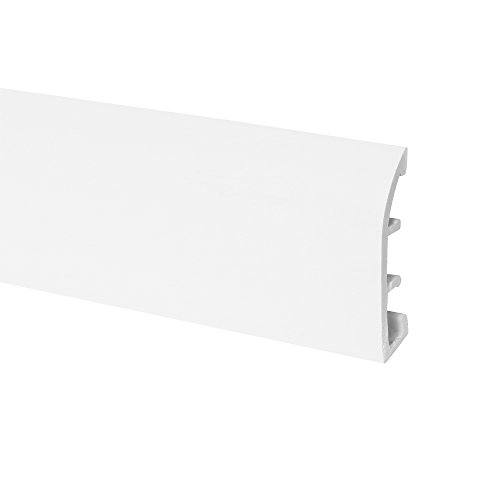 Battiscopa passacavo Multisystem in PVC espanso. È particolarmente indicato per la posa fai da te grazie alla rapidità e semplicità