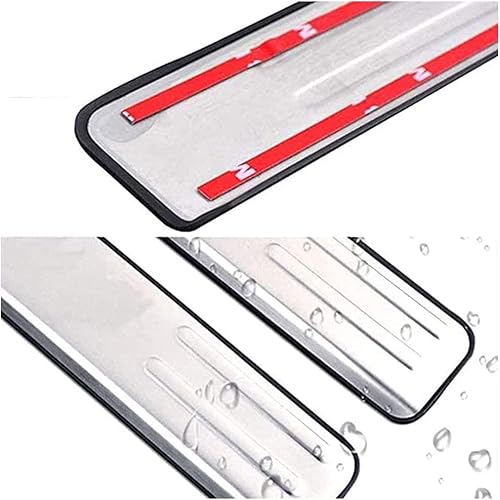 【MATERIALE PREMIUM】: piastre di protezione della piastra del gradino del davanzale della porta Materiale in acciaio inossidabile resistente all'usura contro la resistenza all'acqua Eccellente resistenza alle alte temperature, protegge il telaio della portiera della tua auto. Smetti di preoccuparti dei graffi della vernice dell'auto che possono essere utilizzati a lungo.