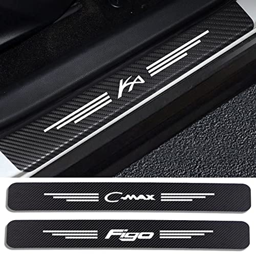 Battitacco per Auto Sticker in Fibra di Carbonio, per FO-rd B-Max GT KA Flex C-Max Figo, 4 Pezzi Esterno Battitacco Protezione Plates Anti-Graffio Scuff Adesivi Decorativi Accessori, KA