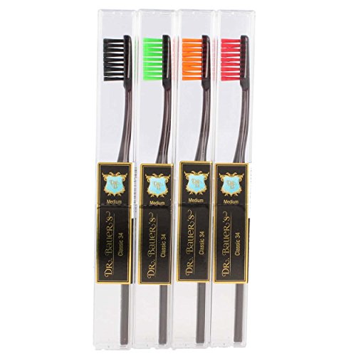 Dr. Bauers, spazzolino da denti classic 34, medium, colore nero, la confezione include una custodia da viaggio