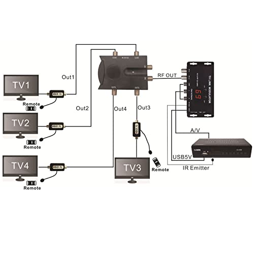 Baugger Amplificatore TV Bidirezionale 2 Ingri Antenna TV Amplificatore di Segnale con 4 Uscite Splitter di Segnale TV a Basso Rumore Amplificatore di Segnale Antenna con Percorso Inverso per Uso Inte