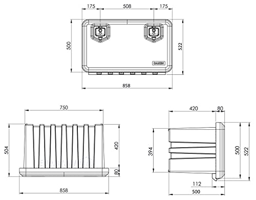 Daken ARKA 858 - Scatola portaoggetti 858 x 522 x 504 mm (L x A x P), contenuto circa 134 litri.