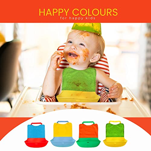 4 bavaglini impermeabili. bavaglini con elastico bambino in gomma. Bavaglino in spugna di cotone. Bavaglino in silicone con tasca per briciole unisex. Bavaglino soffiato. Marfrand ILLUSIONE