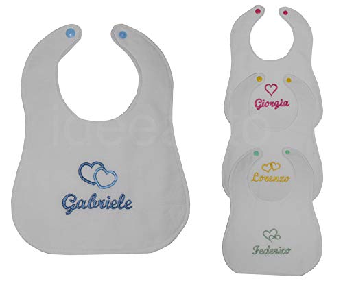 Set di 2 bavaglini personalizzati con il nome ricamato, doppio strato tessuto e spugna assorbente in cotone