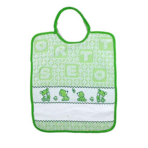 Bavaglino Asilo da Ricamare ORSETTO in spugna - per asilo e scuola materna con fascia in etamine per ricamare il nome Cotone 100% Made in Italy (VERDE)