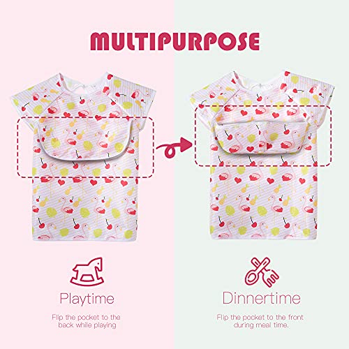 Bavaglino con maniche per bambini Bavaglino impermeabile per neonati e bambini con tasca (Flamingo & Penguin)
