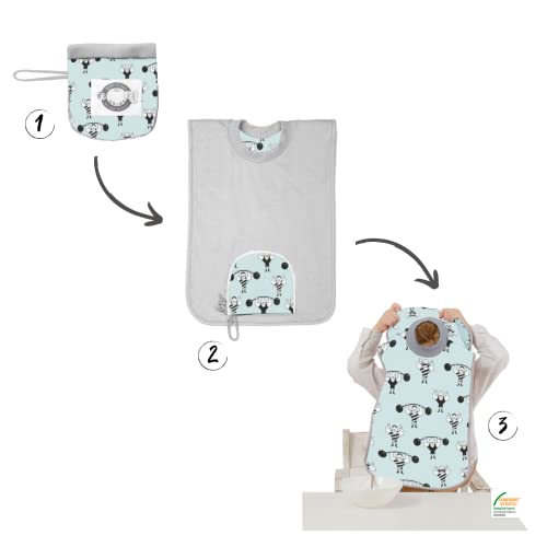 Bavaglino ultra morbido facile da infilare, con tasca per il trasporto, cotone 100% oekotex, ideale per l'asilo