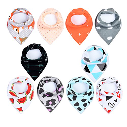 10 x Bavaglino Neonato Bambino Bandana Drool Bavaglini 100% Cotone - Panno per Ruttino Neonato Bavaglini Saliva Bambino Unisex Bavaglino Drool Bandana Neonato (10 pcs)