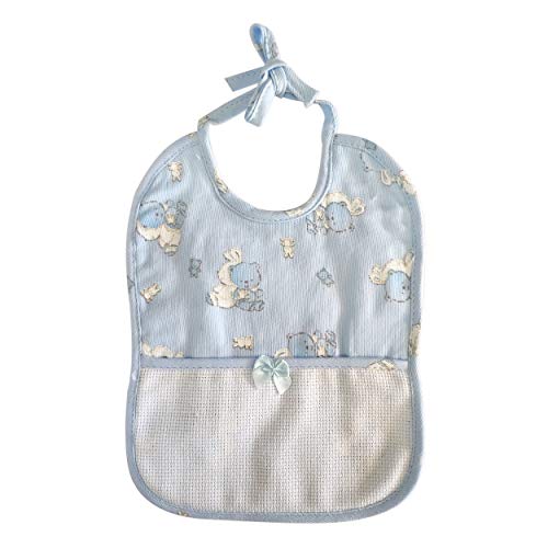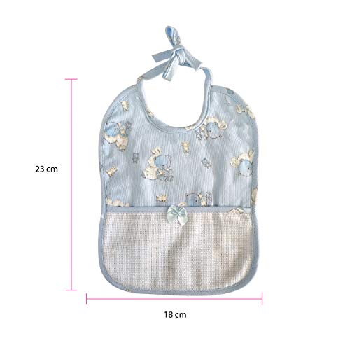 Il Bavaglino Orsetti e Coniglietti è indispensabile nel corredino del bebè, tessuto assorbente in 100% cotone.