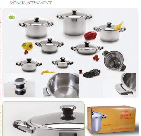 Bavaria Set Batteria di Pentole 18 pz Maxi Platinum in Acciaio Inox 18/10