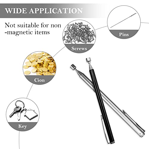 Baven 2 Pezzi Penna Magnetica Telescopica Strumento di Raccolta Magnetico Telescopico Portatile Asta Bastone Estendendo Facile da Usare Estensibile (Nero e Argento)