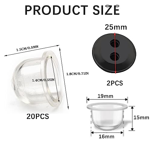 【20 Primer Pompa a Bulbo】 Questo set contiene 20 Carburatore Primer Pompa Bulbi,leggero, comodo e facile da installare. Utilizzato per sostituire la pompa della lampada vecchia o danneggiata e consigliato come dispositivo di ricambio, risparmiando costi e tempo per la sostituzione.