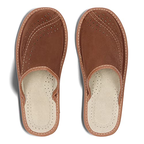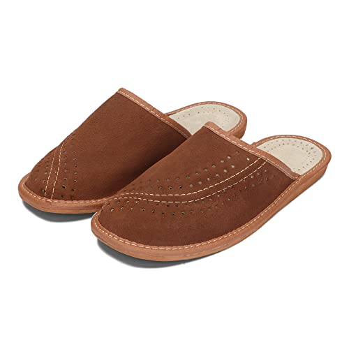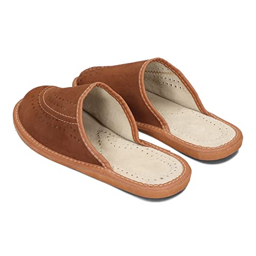 Bawal Pantofole da Uomo Pelle Ciabatte Riscaldato con Lana Marrone Blu 40-46 EU (41 EU, Marrone)