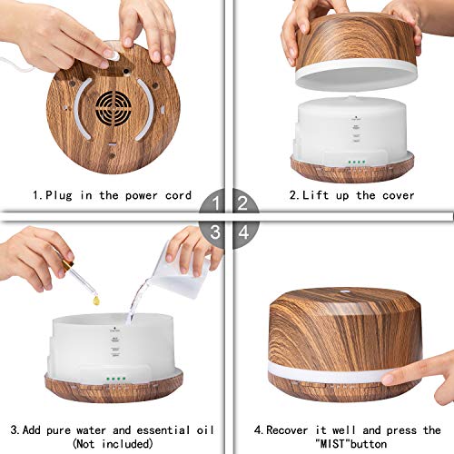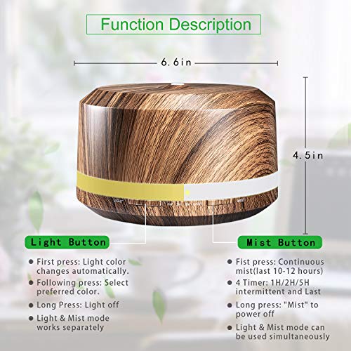 [450ml Diffusore Per Grande ambiente] Con una capacità di 450 ml, i diffusori di oli essenziali funzionano per oltre 12 ore, el vapor fine con oli essenziali può riempire l'intera stanza con la tua fragranza preferita. La venatura del legno in stile naturale si adatta facilmente alla maggior parte degli arredi delle stanze