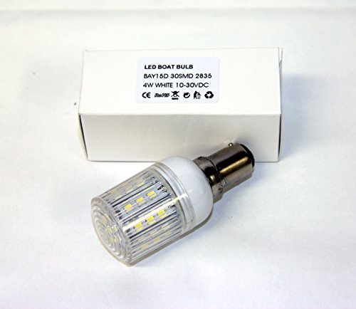 30 SMD LED BAY15D Lamp IP with plastic cover IP65: bulb with 30 SMD LEDs white 4 Watt for Marine navigation lights of Boat Ship Yacht for port starboard masthead lights -made for Socket BAY-15D - 12V - 24 Volt by Startechnik