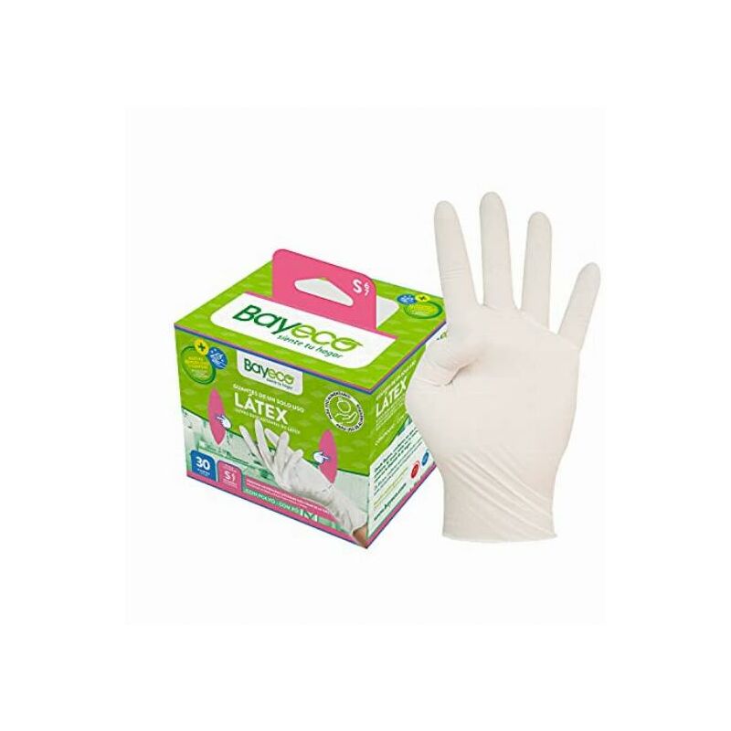 Bayeco guanti in lattice in taglia S presentati in un comodo dispenser da 30 pezzi. Speciali per il contatto alimentare. Con polveri: indossali facilmente.