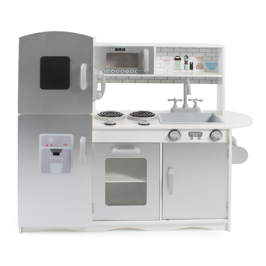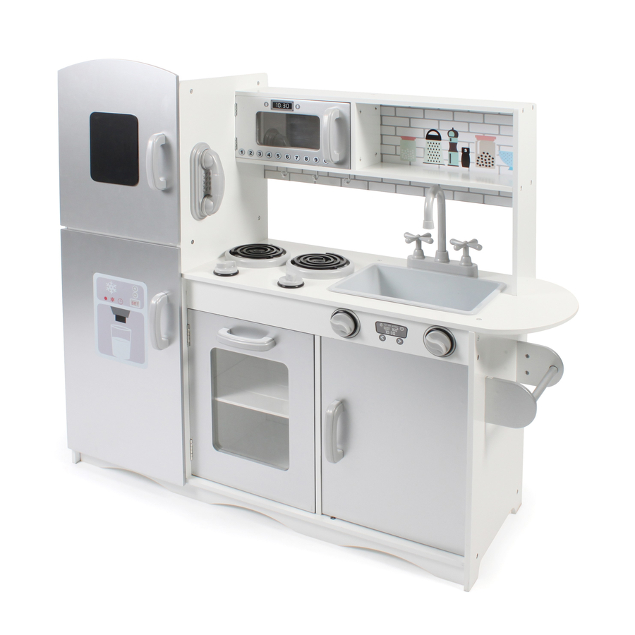 Con questa cucina di BAYER CHIC 2000 i tuoi figli si divertiranno un sacco! La cucina BAYER CHIC 2000 comprende un freezer con lavagna, un frigorifero con adesivo, un rubinetto, dei ripiani e scompartimenti per lo stivaggio, un forno con piastre elettriche e comandi regolabili, un forno a microonde e un telefono. Dettagli: Dimensioni: 91 x 30 x 87 cm Peso: 15 kg Materiale: Legno/plastica Età: a partire da 3 anni Attenzione: Attenzione Non adatto a bambini di età inferiore a 3 anni. Pericolo di soffocamento, causa piccoli pezzi.