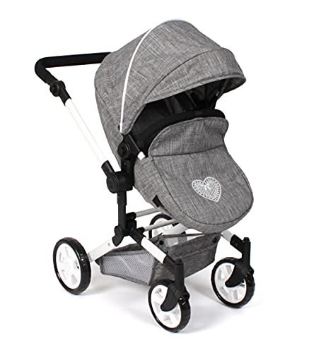 Bayer Chic 2000 - Passeggino per bambole Linus, 3 in 1, per bambini da 4 a 8 anni, set di passeggini per bambole, jeans grigio
