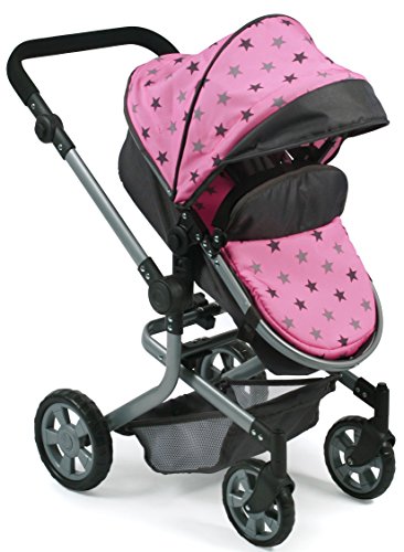 Bayer Chic 2000 - Passeggino per bambole Mika, 2 in 1, per bambini da 4 a 8 anni, con stelle grigie, rosa