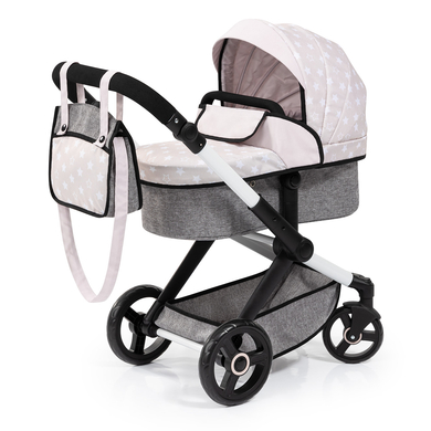 Dettagli del prodotto: Età: da 3 anni Stupisce per le sue numerose possibilità di regolazione Offre spazio per bambole fino a una dimensione di 52 cm Maniglia regolabile in altezza: può essere adattata in modo ottimale all'altezza del bambino La navicella può essere posizionata sia in direzione di marcia che in direzione del bambino La vasca può essere facilmente trasformata in sedile sportivo tramite pulsanti e il semplice cambio di posizione, che può anche essere rivolto verso entrambi i lati. Il coperchio della vasca protegge la bambola dalle intemperie, come il sole o il vento. Ruote anteriori piroettanti, che consentono di affrontare le curve con particolare facilità Si ripiega facilmente La borsa in dotazione è coordinata con il colore della carrozzina. Ha una cerniera e può essere utilizzata come borsa a tracolla o a mano. Cestino integrato che offre spazio per molti accessori Il seggiolino auto per bambole EasyGo può essere agganciato al telaio Modern it Design Dimensioni e peso: Dimensioni (lunghezza x larghezza x altezza): 65 x 37 x 74 cm Peso: 3 kg Materiale e cura: Materiale: alluminio, plastica, poliestere Istruzioni per la cura: Lavare a mano Incluso nella consegna: 1 carrozzina per bambole combinata rosa/grigio Xeo, 1 borsa. Attenzione: il seggiolino auto EasyGo non è incluso nella consegna.
