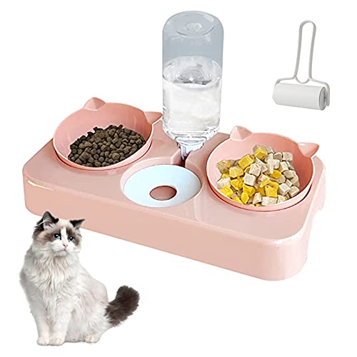BAYINBROOK Doppia Ciotola per Animali Domestici,3 in 1Doppio Ciotole per Gatti,Distributori Automatici di Cibo & Acqua,Set di Ciotole Doppie per Cani di Taglia Piccola o Media (Rosa)
